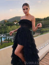 A-line Black Tulle Strapless Long Evening Prom Dresses, Custom High Low Prom Dresses, BGS0048