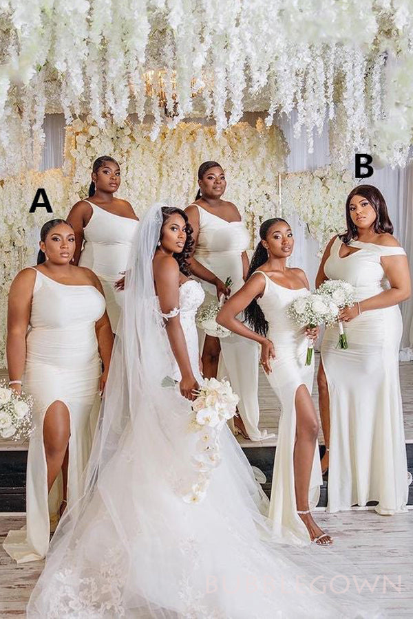 One Shoulder White Chiffon Elegant Cheap Long Bridesmaid Dresses , BN1089 One Shoulder White Chiffon Elegant Cheap Long Bridesmaid Dresses , BN1089