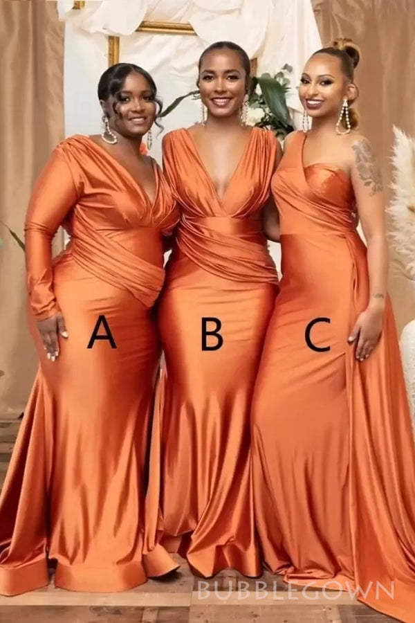 Mismatched Orange Satin Mermaid Long Custom Bridesmaid Dresses, BGB0092