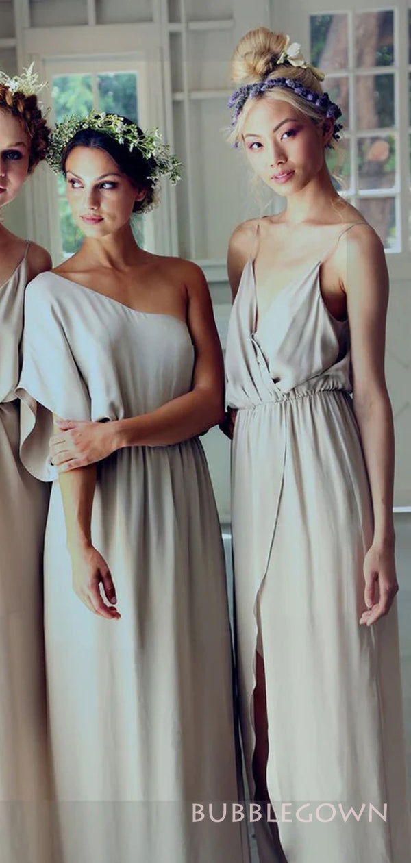 Mismathed Silver Grey Chiffon A-line Cheap Long Custom Bridesmaid Dresses, BGB0104 Mismathed Silver Grey Chiffon A-line Cheap Long Custom Bridesmaid Dresses, BGB0104