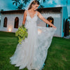 Charming Unique V-neck Lace A Line Bridal Long Wedding Dresses, BGH002