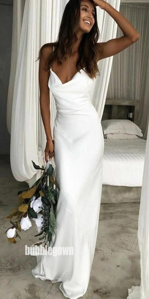 Elegant White Spaghetti Straps Long Wedding Dresses, BGH089 Elegant White Spaghetti Straps Long Wedding Dresses, BGH089