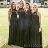 Black Lace Chiffon A-line Halter Cheap Long Custom Bridesmaid Dresses, BGB0101 Black Lace Chiffon A-line Halter Cheap Long Custom Bridesmaid Dresses, BGB0101
