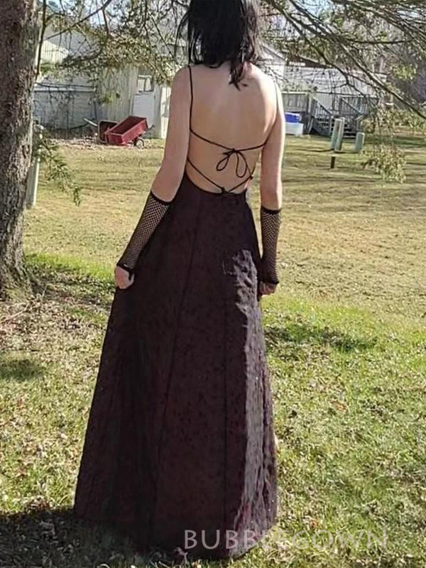 Black Lace Red A-line Spaghetti Straps Long Prom Dresses, BGS0466 Black Lace Red A-line Spaghetti Straps Long Prom Dresses, BGS0466