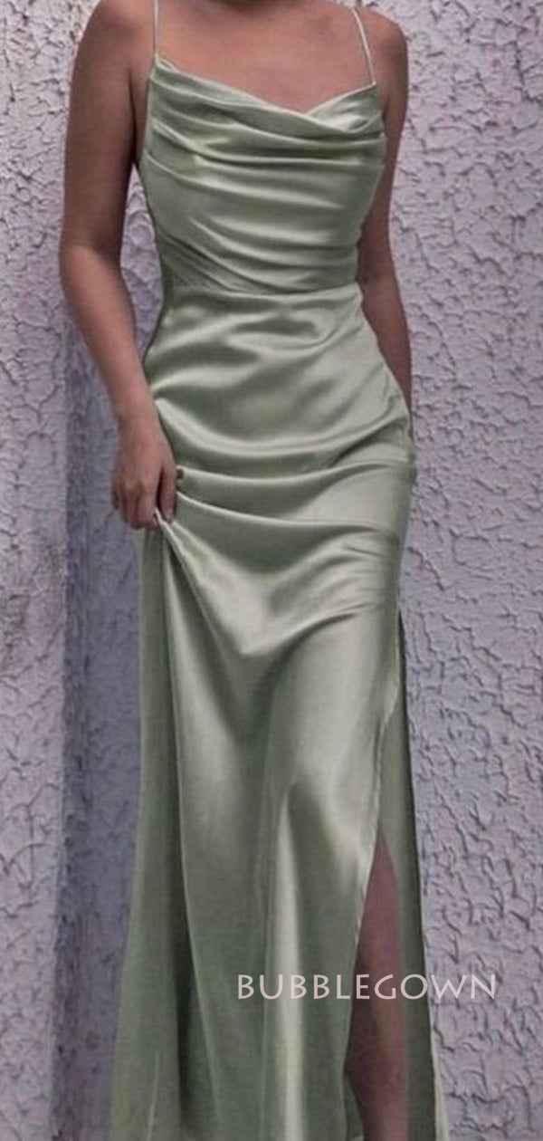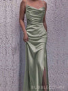 Spaghetti Straps Sage Satin Mermaid Long Evening Prom Dresses, BGS0364 Spaghetti Straps Sage Satin Mermaid Long Evening Prom Dresses, BGS0364