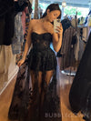 Black Tulle Appliques Strapless Long Evening Prom Dresses, Custom A-line Prom Dress, BGS0087