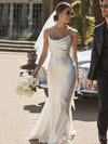 Mermaid Ivolry Satin Spaghetti Straps Long Evening Prom Dresses, Custom Wedding Dresses, BGS0047