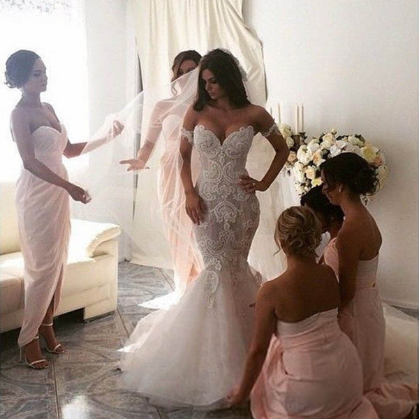 Off the Shoulder Mermaid Applique Charming Long Wedding Dress, BG51610