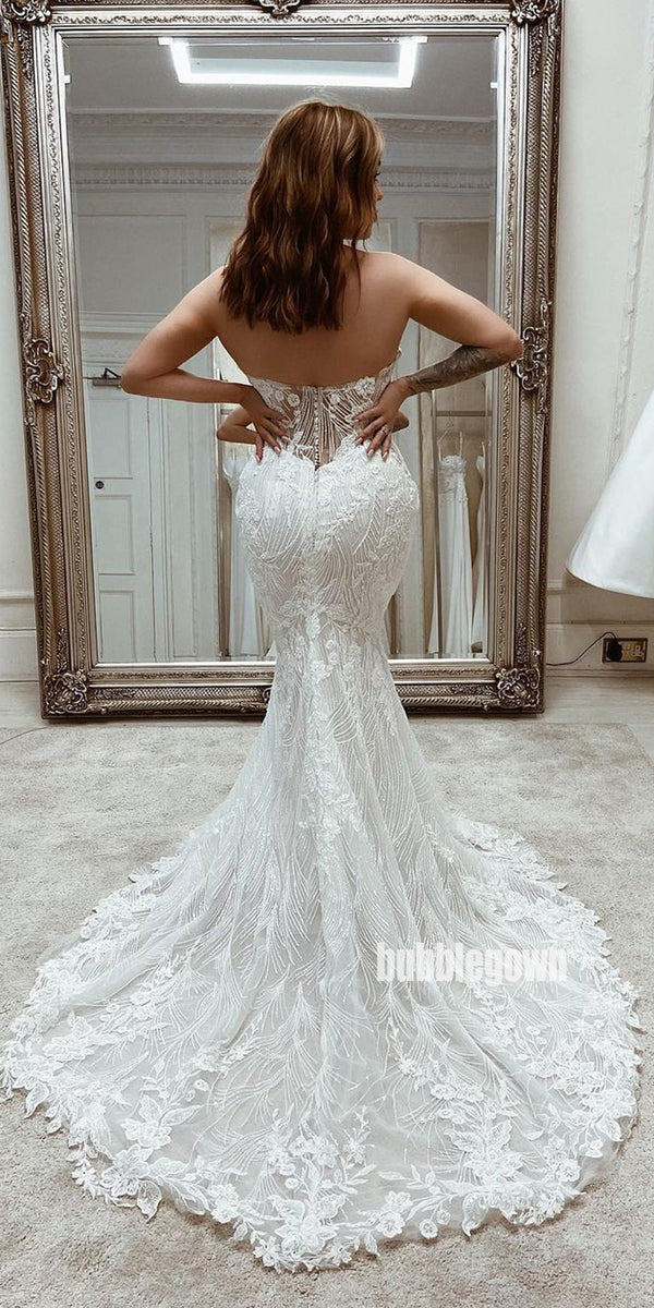 Sweetheart White Lace Applique Mermaid Wedding Dresses, BGH097 Sweetheart White Lace Applique Mermaid Wedding Dresses, BGH097